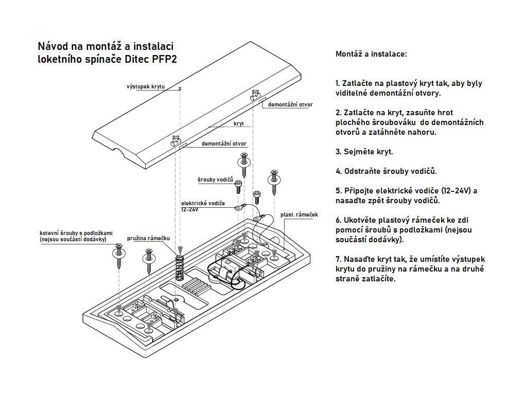 Ditec PID24 - mikrovlnný bezdotykový spínač - střední, plastový, na omítku